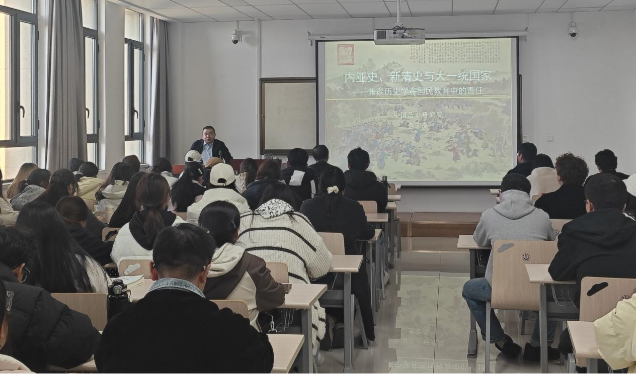 10月31日下午,中国社会科学院、中国历史研究院古代史研究所鱼宏亮研究员在我校历史文化学院412教室,举办了题为《内亚史、新清史与大一统国家——兼谈历史学在国民教育中的责任》的学术讲座。本次讲座由历史文化学院杜林渊教授主持,学院师生共百余人参加了此次讲座。